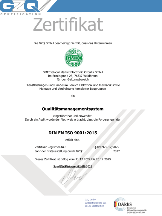 Wir freuen uns, Ihnen mitteilen zu können, dass wir im Dezember ein Qualitätsmanagementsystem eingeführt haben und erfolgreich nach DIN EN ISO 9001:2015 zertifiziert wurden. Diese Zertifizierung ist ein wichtiger Meilenstein für uns und zeigt unser Engagement für höchste Qualitätsstandards in allem, was wir tun.